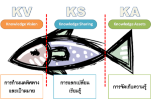 โดยให้การจัดการความรู้เปรียบเสมือนปลา ซึ่งประกอบไปด้วยส่วนหัว ส่วนลำตัว และส่วนหาง แต่ละส่วนมีหน้าที่ที่แตกต่างกันออกไปดังต่อไปนี้